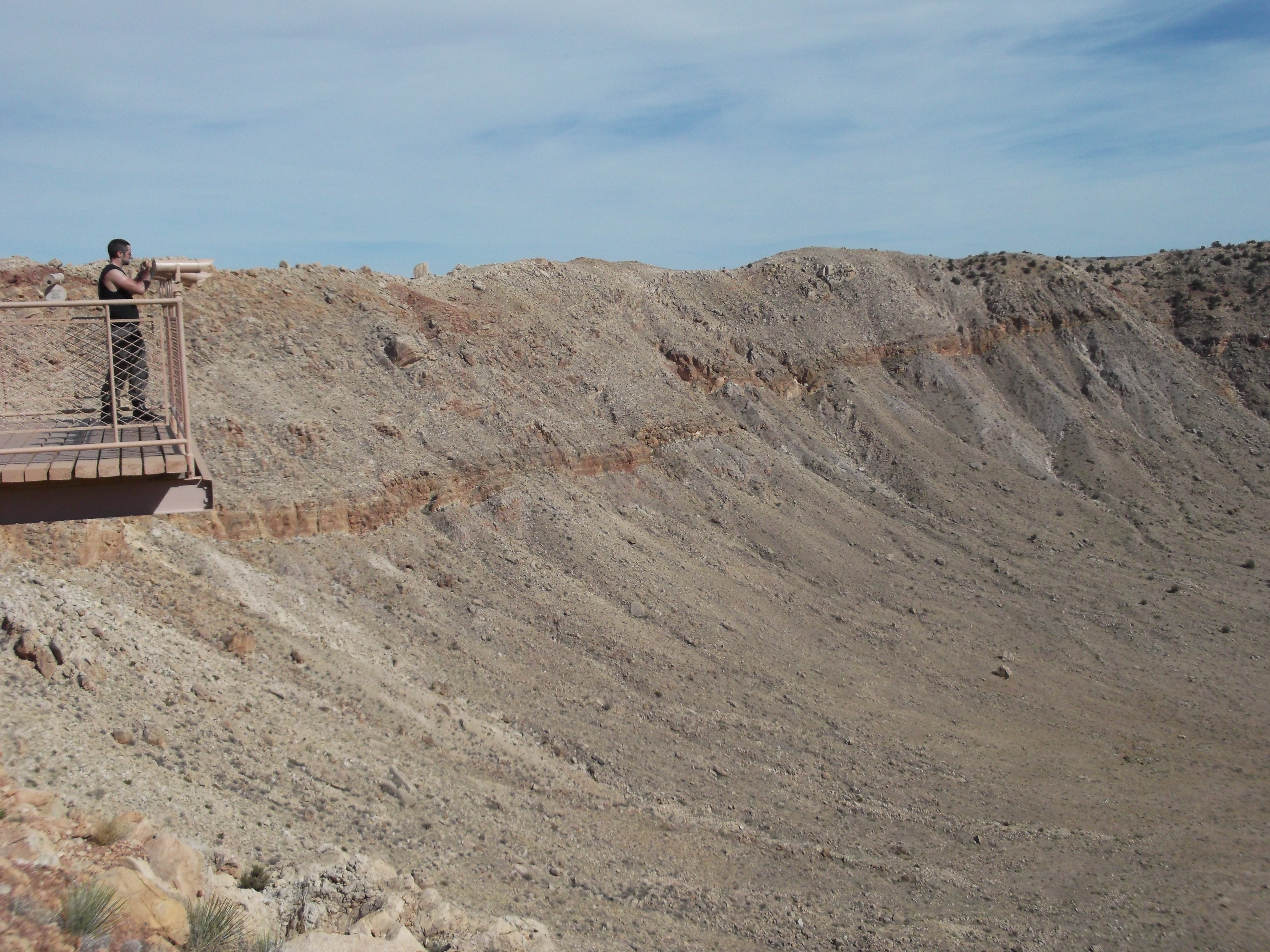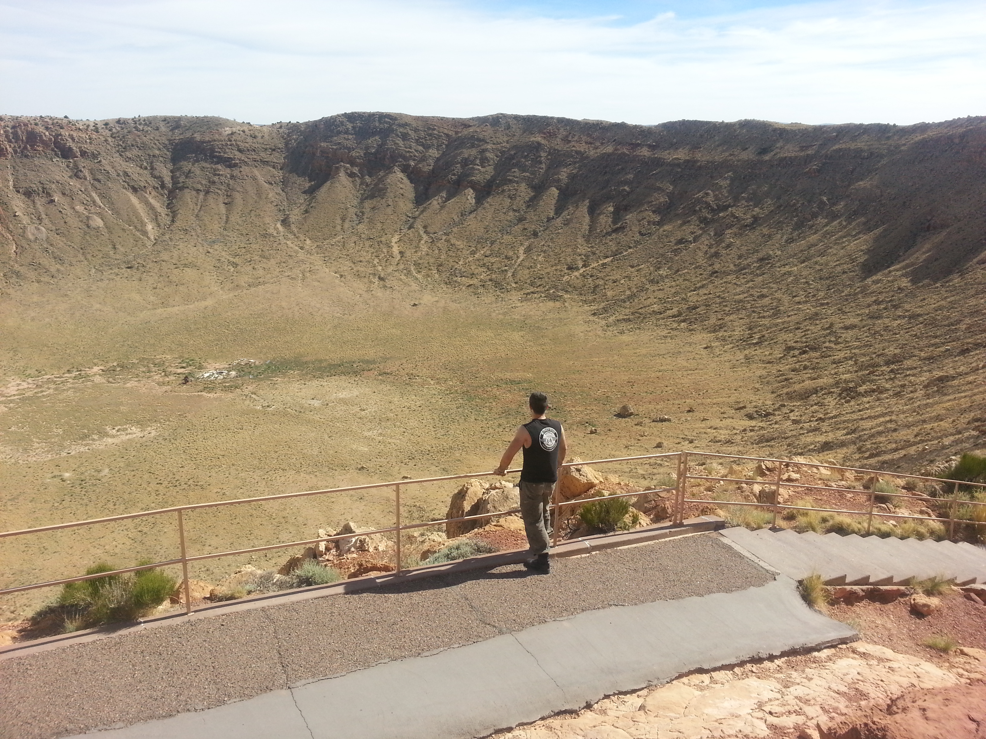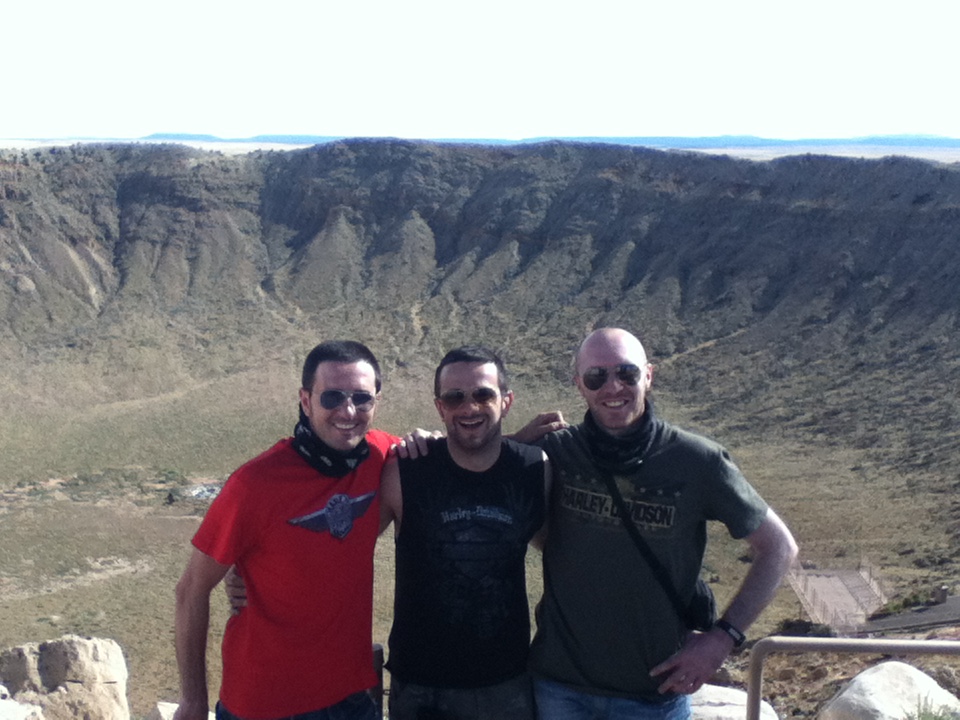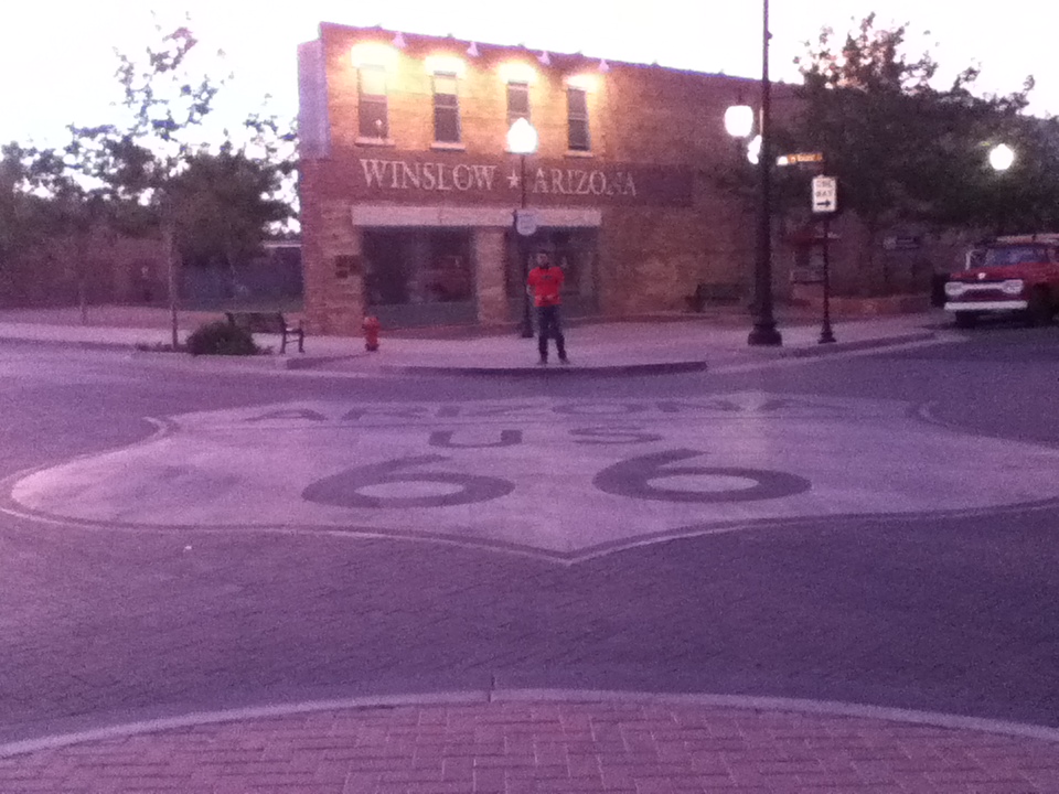 Il fantastico e poco visitato Meteor Crater volevo assolutamente vederlo, nel mio secondo viaggio. E così di buona mattina ci siamo messi in sella; prima abbiamo percorso un bel tratto di Route 66, reso onore una volta ancora alla Mother Road con una veloce sosta a Seligman, e poi siamo tornati sulla più moderna Interstate 40 (che praticamente ne ha preso il posto, avete presente il film di animazione Cars?…). Pranzo a Flagstaff e finalmente a metà pomeriggio arriviamo. Il Meteor Crater è uno dei migliori siti al mondo dove si possono vedere gli effetti dell’impatto di un meteorite sulla terra, una attrazione turistica naturale unica e incredibilmente sottovalutata. Ma in effetti a Winslow potevo anche evitare di fermarmi una notte: la cittadina, oltre che fuori mano, è anonima, uguale a mille altre negli States, in una parola trascurabile. Solo che volevo assolutamente vedere quell’incrocio a cui i mitici Eagles devono il loro primo grande successo discografico. E come a questo punto avrete capito, in realtà non c’è nulla di particolare da vedere: il corner citato nella canzone è stato creato apposta dopo, quando diventò una hit e diede notorietà sia alla band che a questa isolata e sconosciuta cittadinotta americana. Ma mi frullava in testa da un pò, Winslow Arizona, ed è stata una soddisfazione passarci mentre andavamo verso est, immaginando per qualche istante di starmene lì all’angolo, divertito e indolente come il protagonista della canzone: ecco l’inno west coast alla spensieratezza e alla leggerezza, “Don’t let the sound of your own wheels drives you crazy”: