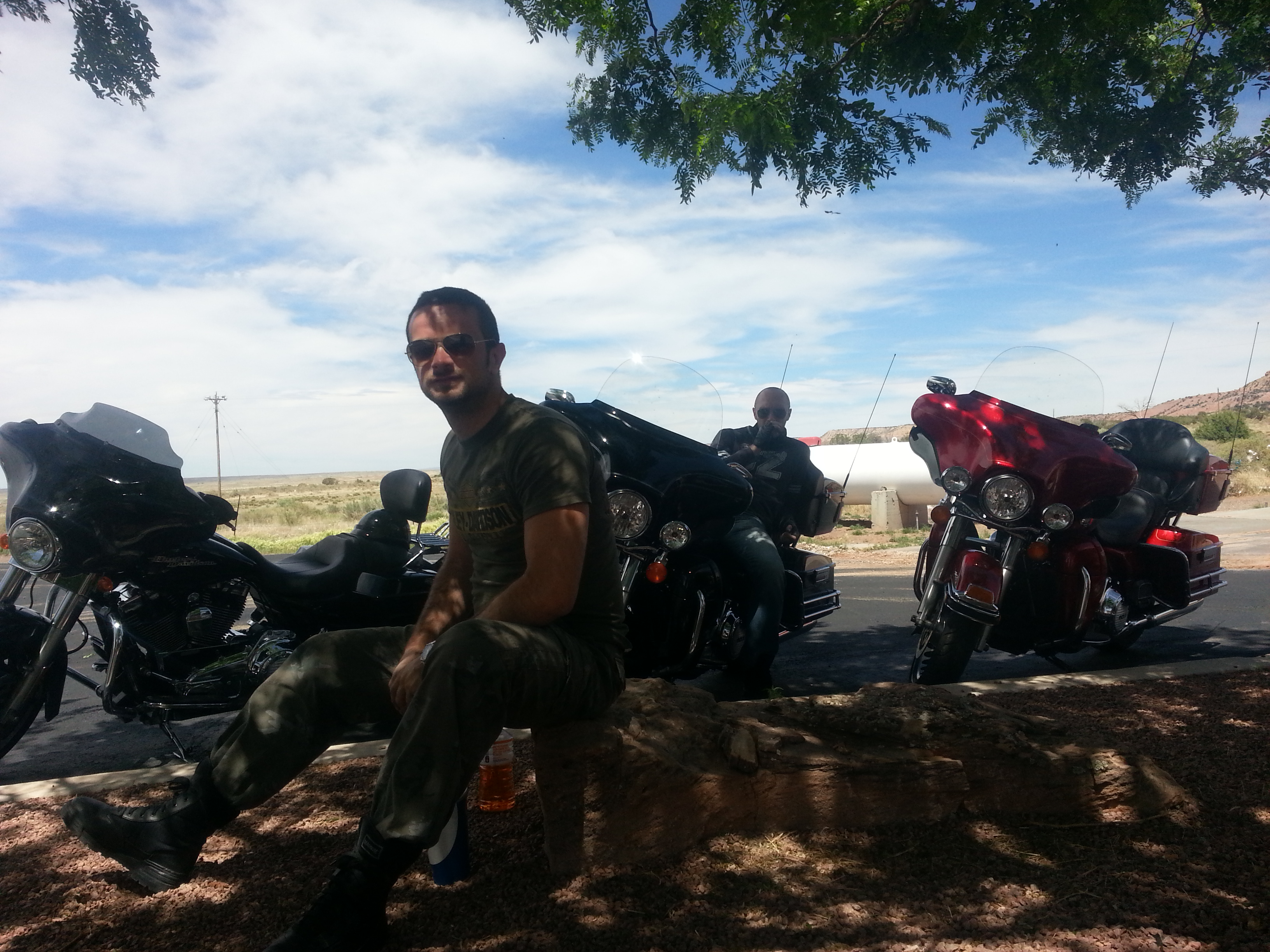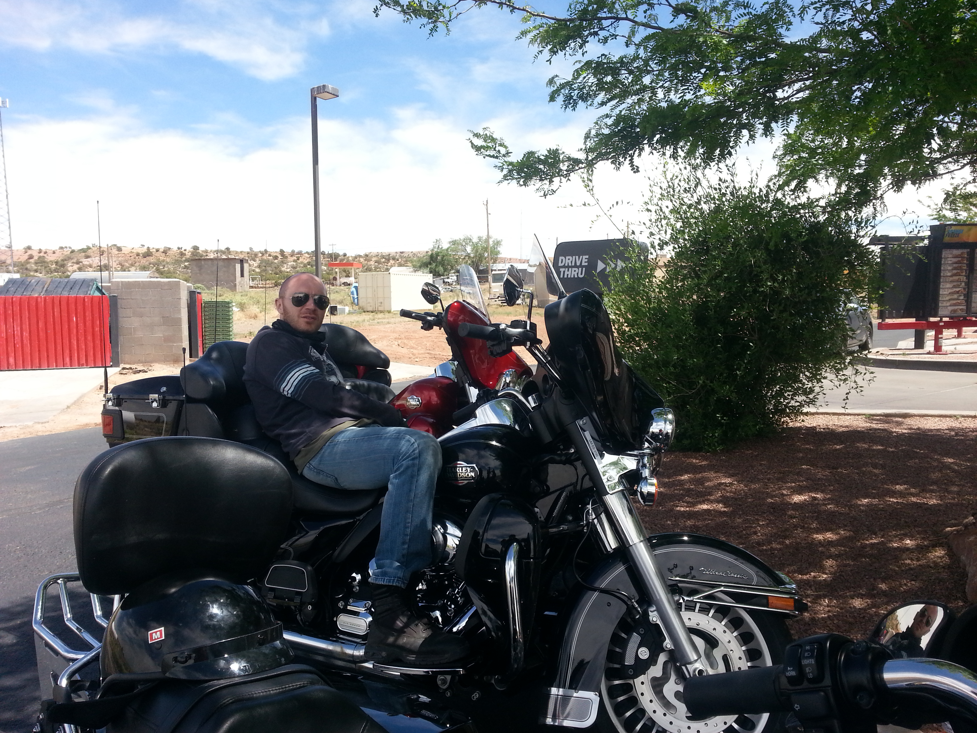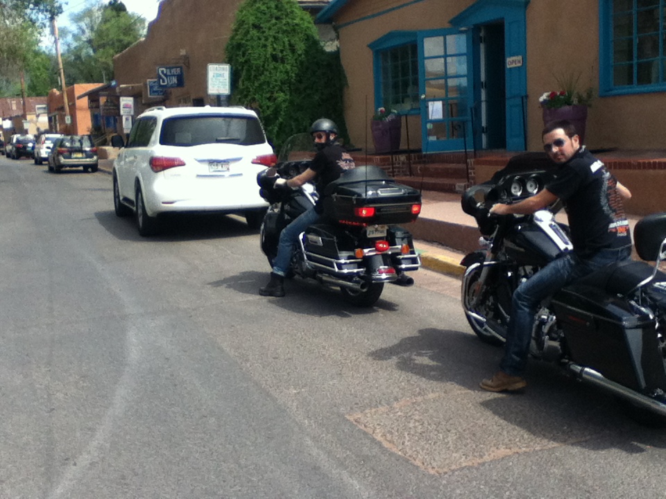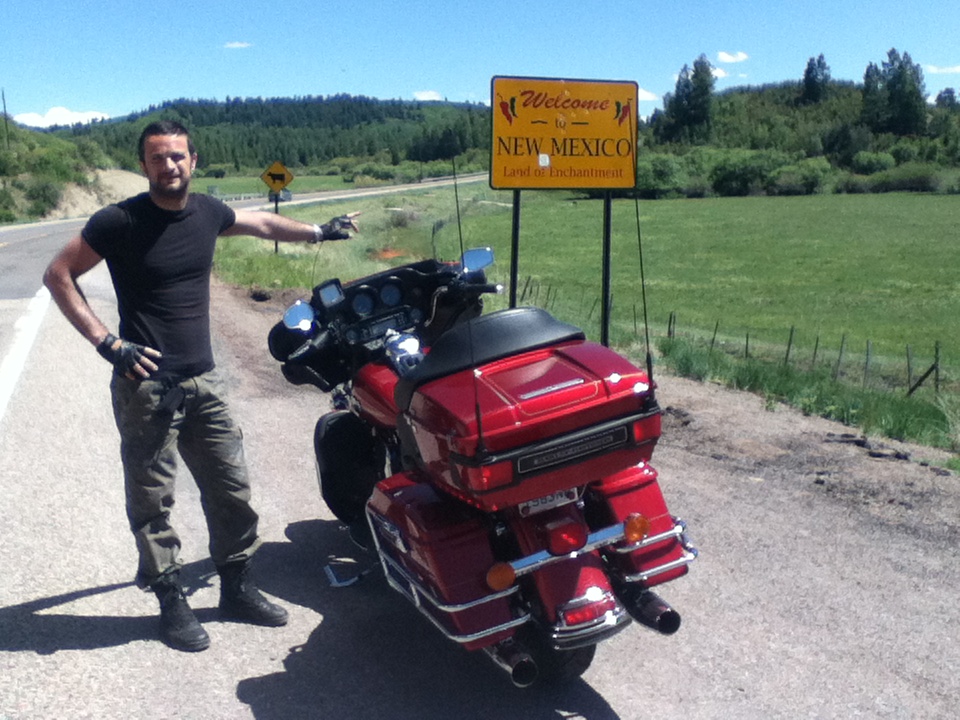 Sosta in New Mexico, a Santa Fe, con le sue architetture in adobe e i peperoncini (il simbolo dello stato) appesi agli stipiti delle abitazioni. Da qui il giorno seguente avremmo dovuto visitare anche il Pueblo di Taos, ma decidemmo invece di goderci una giornata di totale e meritato riposo in piscina. “With saddles on our horses, marching over we did go Until we reached the logging out in New Mexico”. Per un giorno, le nostre Harley sarebbero rimaste ferme al parcheggio davanti al motel: