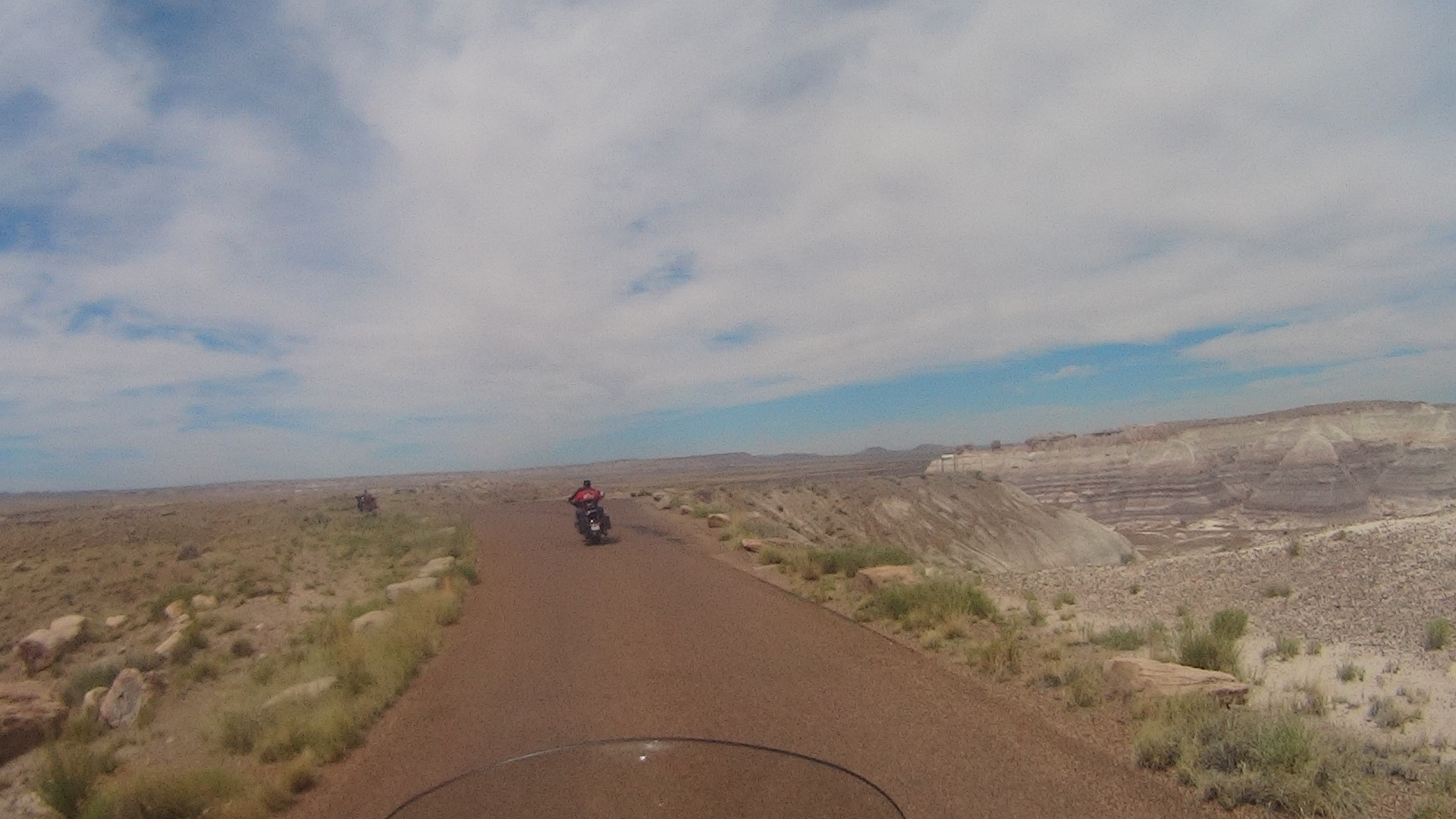 Dopo aver visitato la Monument Valley, devo dire che ti rimetti in moto più leggero e in preda a una sottile euforia. Se sei diretto a nord, dopo alcuni chilometri di curve percorri il celebre tratto di strada prima in discesa e poi in salita che avrai visto in tanti film o riviste di viaggio. In realtà anche oltre, e fino a Mexican Hut, tutta la 163 è molto scenografica, con le rocce maestose dalle forme sempre più inverosimili a incorniciare il cielo. Spazi immensi dove commettere i propri errori e crescere, come dice la prossima canzone. E tu li stai percorrendo: