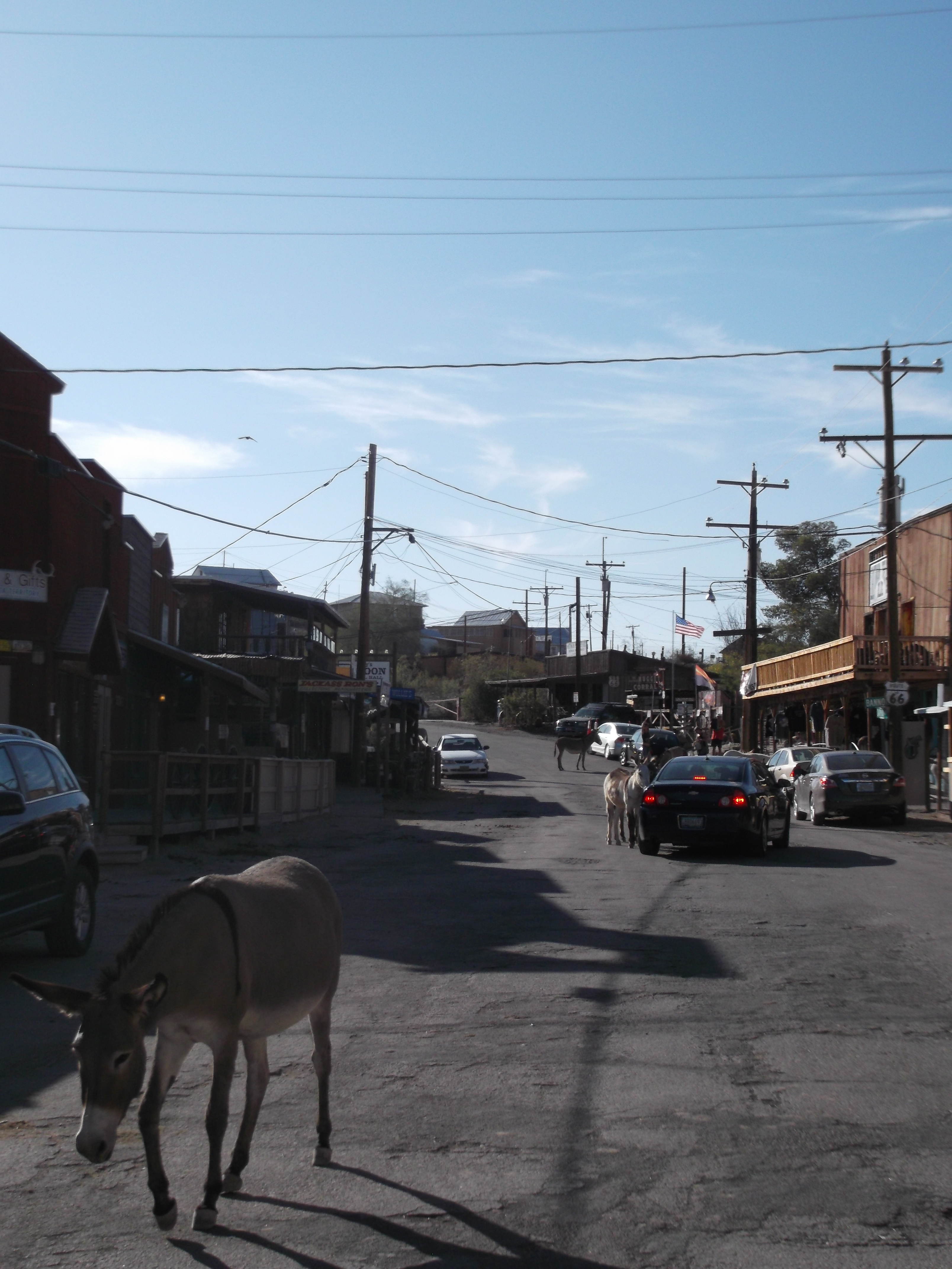 Dopo una bella dormita allo Stovepipe, un motel in mezzo al nulla, svegliarsi presto la mattina e percorrere le lunghe strade sul fondo della Valle della Morte ti fa sentire nuovamente rilassato e confidente. Poi esci dalla valle (che è in California), superi Las Vegas (in Nevada) e scopri un posto come Oatman (Arizona), ai piedi delle Black Mountains lungo il primo tracciato della Route 66. Si tratta di una cittadina mineraria praticamente abbandonata, le poche decine di abitanti che ancora ci vivono cercano di mantenere vive le tradizioni e i ricordi dei tempi andati. Lungo la main street il tempo sembra davvero essersi fermato ed è estremamente divertente curiosare tra edifici in rovina e memorabilia di vario genere. E’ tutto a beneficio dei pochi turisti di passaggio, compresi tre o quattro asinelli che girano indisturbati e qualche Harley d’epoca in quello che dovrebbe essere una specie di museo. Ma seduto al saloon dell’Oatman Hotel, con una rinfrescante birra in mano, ti sembra tutto molto verosimile. E dici “Questa terra è la mia terra”: