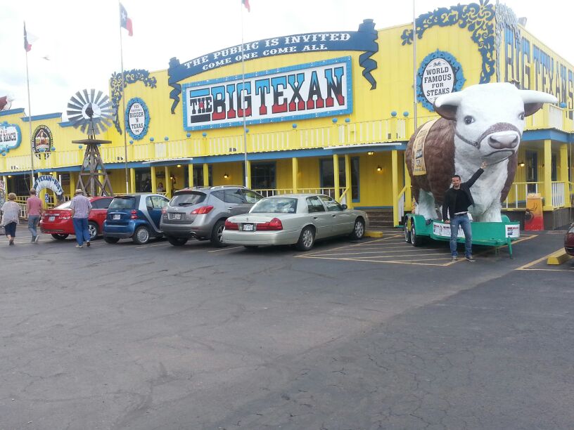 Quando dal New Mexico torni sulla Interstate 40 e punti verso est, ormai sei in Texas. Più precisamente, sei nella parte settentrionale dell’immenso Lone Star State. Ad Amarillo vedi un campo ai lati della strada con una dozzina di Cadillac piantate nel terreno. Cosa significa questa singolare attrazione? Non molto in effetti. E’ strana e basta, per questo è celebre. Oltre a una foto ricordo, al Cadillac Ranch puoi anche imbrattare le carrozzerie delle macchine e contribuire così a questa singolare opera d’arte pop. Al Big Texan invece servono le bistecche più grandi dello stato: 2 chili. Se la mangi in un’ora la offre la casa, altrimenti paghi 72 dollari. Una challenge divertente e irresistibile, e vincerla è molto meno facile di quello che si può pensare: