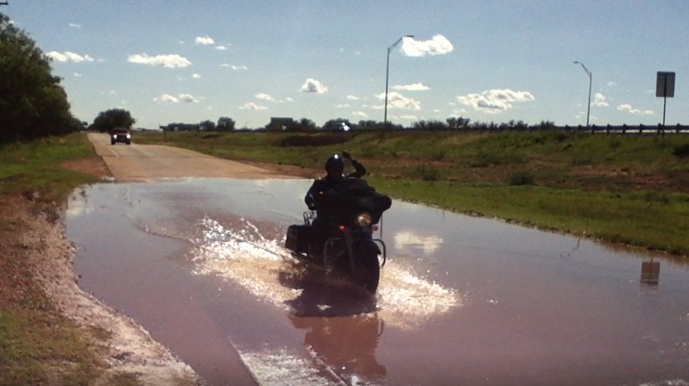 Quando il Texas si allaga sono dolori, dice una vecchia canzone. Noi abbiamo rischiato di trovare uno storm sul nostro percorso. Non so come sarebbe andata a finire, sarebbe stato un contrattempo che poteva bloccarci lì anche diversi giorni, mentre le tappe del nostro viaggio erano tutte programmate e tre giorni dopo avremmo dovuto raggiungere la meta finale. Fortunatamente la tempesta ha avuto paura delle nostre Harley, e ha cambiato strada… “Baby, the sun shines on me every day”. A parte guadare qualche allagamento e qualche preoccupazione, tutto è filato liscio: