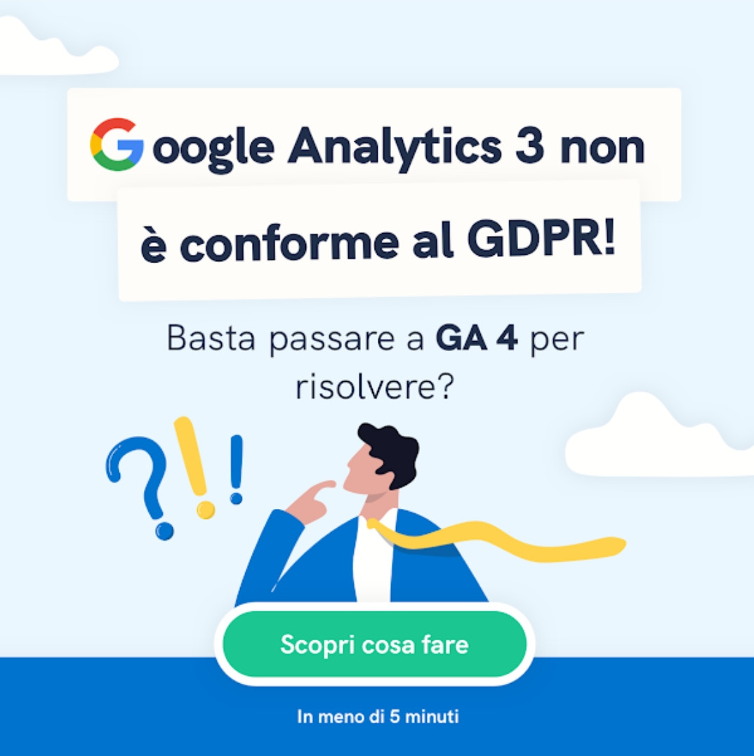 Parliamo di Google. Ma non del motore di ricerca (per stavolta niente pistolotto SEO o SEA quindi), bensì di Analytics (e più avanti di Ads). Come noto, il trattamento dei dati tramite la suite Google Analytics Universal è stato dichiarato “illecito” da diverse sentenze di Autorità garanti della Privacy di diversi paesi europei (tra cui il nostro), principalmente perché le procedure di IP Anonymization a tutela degli interessati sono ritenute insufficienti: i dati vengono spostati su server in territorio USA, Paese “non sicuro” secondo gli standard europei, e usando altri dati pure rilevati dall’analitico (ad es. browser, data e ora della navigazione) è teoricamente possibile re-identificare l’interessato.