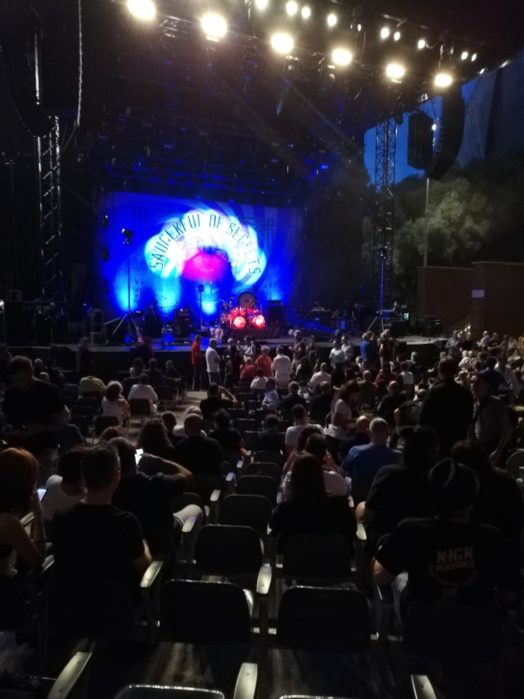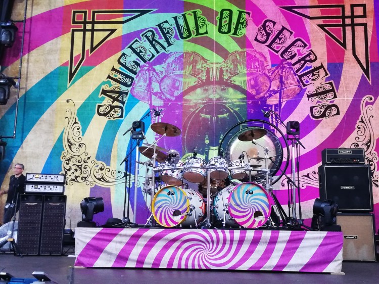 Il suo spettacolo l’ho visto nel 2019 all’auditorium di Roma insieme a mia sorella e devo dire di averlo trovato molto piacevole, di aver apprezzato soprattutto la scala contenuta e intima dell’evento, che mi ha consentito di vedere uno dei miei idoli suonare “da qui a lì”. Una bella emozione, considerate che la prima volta lo vidi (si fa per dire) nel ’94 alle piscine di Cinecittà con i Pink Floyd “a tre”: concerto memorabile (ne parlo qui), ma praticamente ero a non meno di 200 metri del palco. Certo l’allestimento e lo stesso drumkit stavolta erano un pò sopra le righe, per così dire, ma evidentemente volevano richiamare l’estetica psichedelica che ha caratterizzato i primi anni della band e quindi in qualche modo ci può stare.