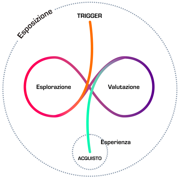 Rispondono a tale requisito il famoso Funnel (di cui ormai esistono molte versioni), il Customer Journey, che lo riconfigura in modo circolare (anche qui ci sono diverse rielaborazioni, la mia variante preferita è il Buying Cycle) e introduce nel modello una realistica dose di entropia, il Momento Zero Della Verità, che aggiorna all’epoca del digitale i precedenti modelli della Scandinavian (mercato dei servizi) e della P&G (largo consumo), e ora il Messy Middle, recentemente elaborato sempre da quelli di Google.