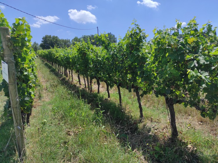 La tenuta ha una gamma di prodotti molto ampia, praticamente ogni tipo di vino, tra le altre cose io l’avevo scelta come target per la nostra visita anche per questo e dunque sono rimasto particolarmente soddisfatto: dagli spumanti (bianco e rosé) al sagrantino passito passando per i bianchi e, naturalmente, per i due rossi Montefalco e Sagrantino secco. Vini ottenuti valorizzando le varietà locali, in primis ovviamente il sagrantino, ma anche uve a bacca bianca tipiche dell’Umbria come il grechetto e il trebbiano spoletino.