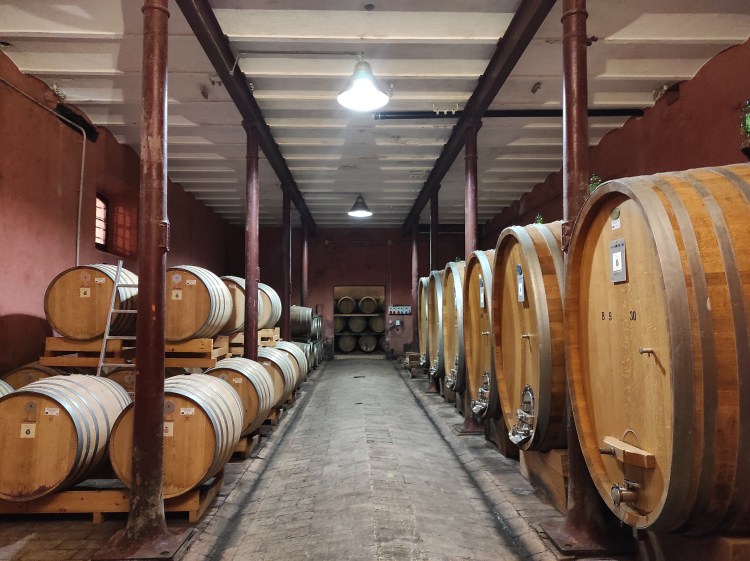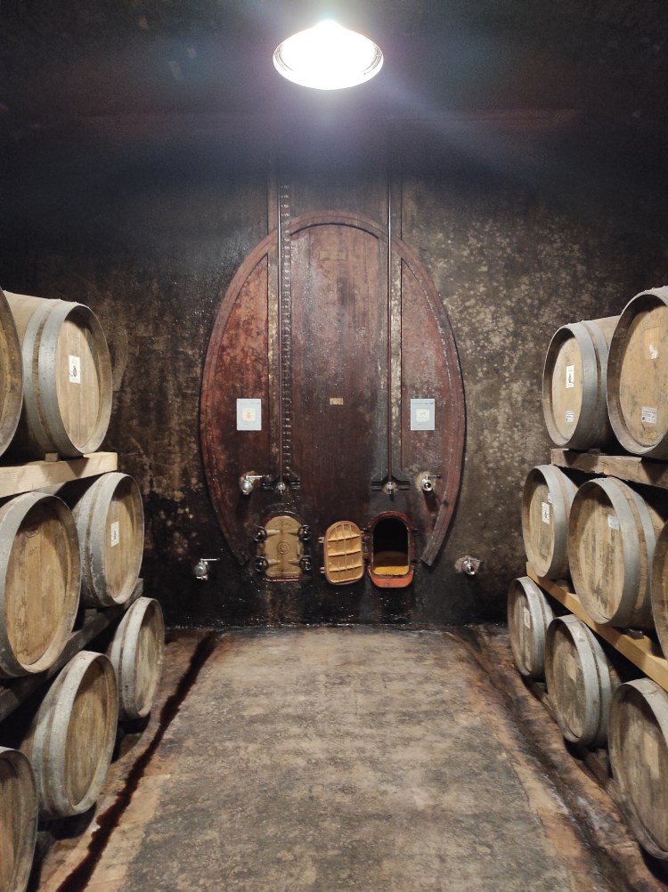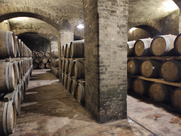 Come ci viene spiegato all’inizio della visita, la cantina è praticamente appoggiata a un fianco della collina, per il resto interamente ricoperta dai vigneti, garantendo così in modo naturale temperature e umidità costanti. Ed ha una lunga storia che merita di essere raccontata.
