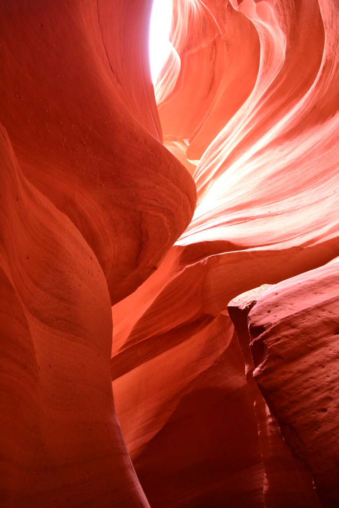 l’Antelope Canyon è una stretta fessura nel terreno provocata dall’erosione per effetto di acqua e vento. Non bisogna pensare alla scala sovrumana e maestosa del Grand Canyon. Qui la gola rocciosa è piccola e stretta, ma regala giochi di luce incredibili grazie alle pareti del canyon che sembrano levigate da uno scultore.