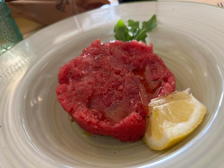 “Maestro! Come sta? Che onore conoscerla, sa veniamo da Roma, bla bla bla”… alla fine ci dice “io stasera, se volete, du’ posti ve li trovo“, e così di fronte all’invito del padrone di casa ci sembrava brutto rifiutare e siamo saliti al piano di sopra, dove si serve da mangiare. Avevano avuto due no show, come si dice nel turismo, e mancavano solo 3 minuti all’inizio del servizio, siamo stati davvero molto fortunati ad approfittarne.