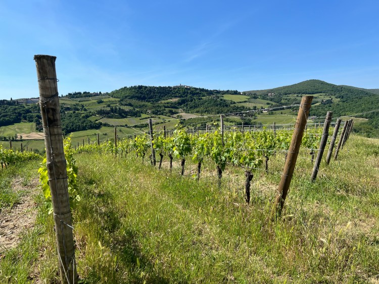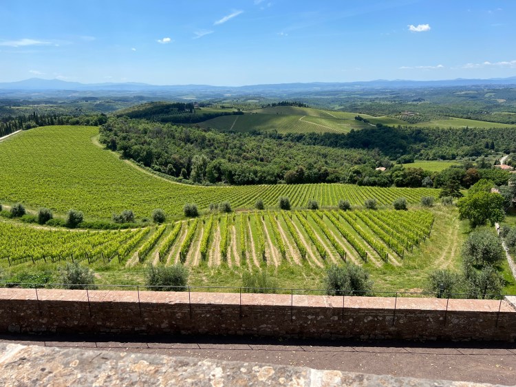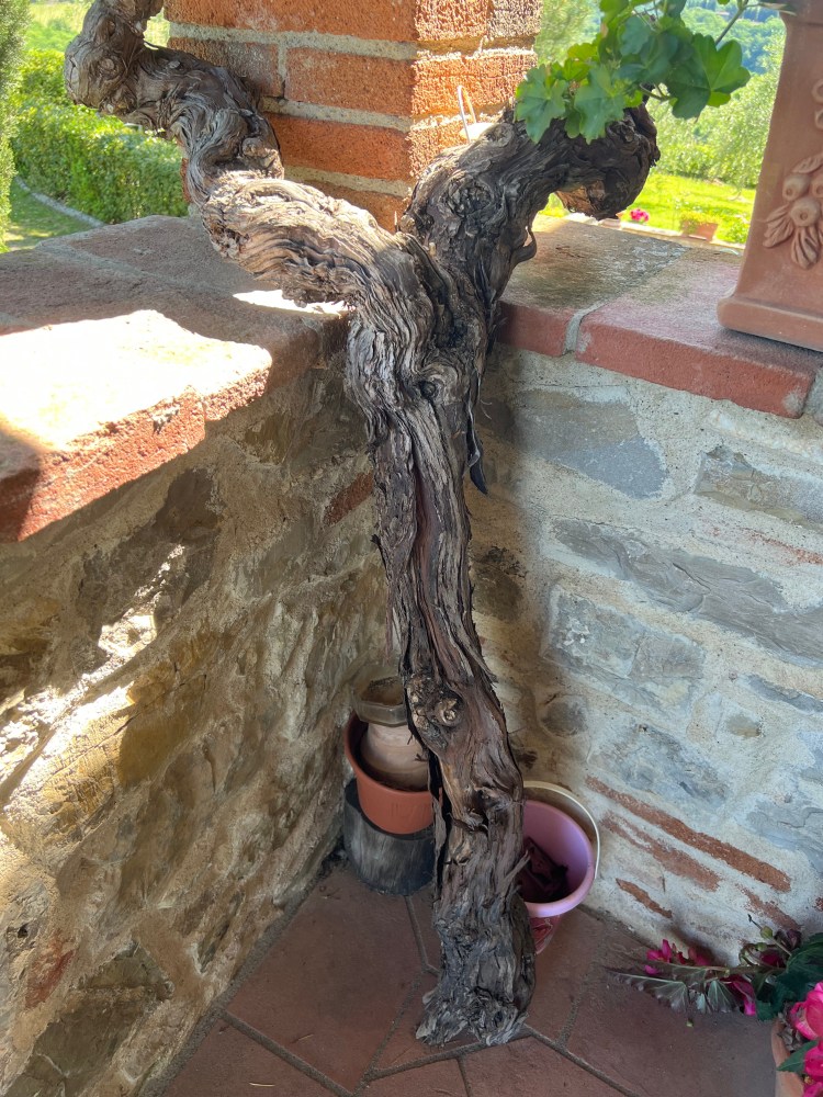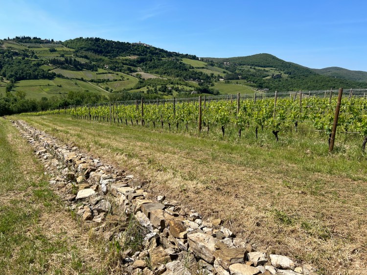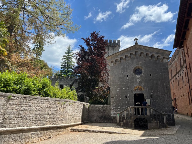 Fortuna ha voluto che, in concomitanza con Cantine Aperte, i giardini del Castello fossero visitabili gratuitamente. Così ci siamo letteralmente arrampicati fino all’ingresso e abbiamo girovagato un pò all’esterno dando un’occhiata alla chiesetta, alla cripta che ospita le sepolture di famiglia e ai giardini, con un punto panoramico clamoroso sulle sottostanti vigne e colline di questa parte di Chianti.