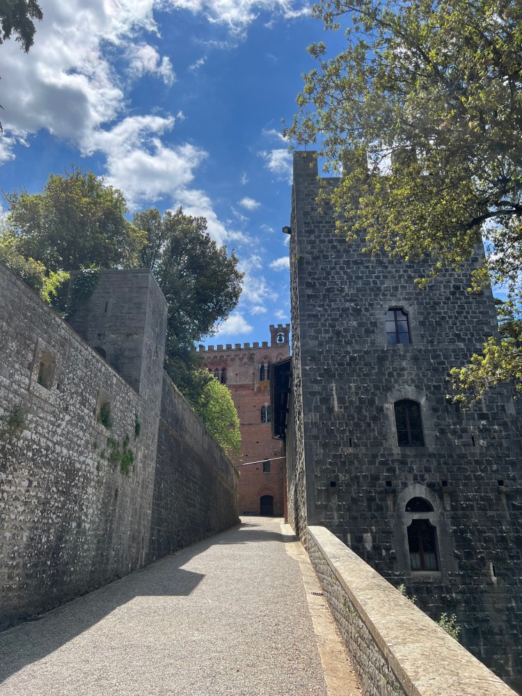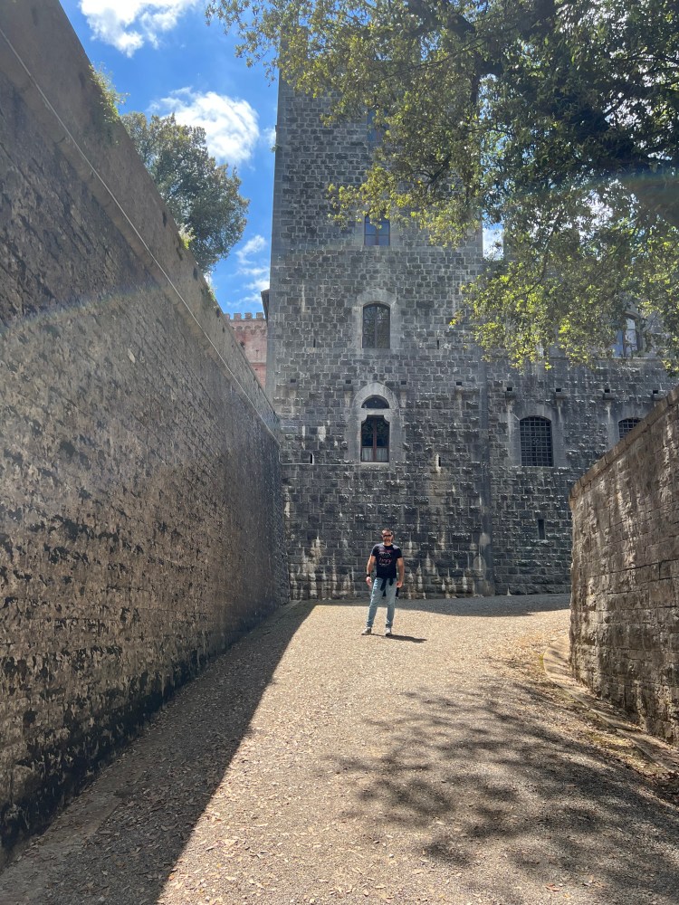Per concludere in bellezza, come scrivevo all’inizio, ulteriore colpo di fortuna. Salutato Diego abbiamo raggiunto il Castello di Brolio, a Gaiole in Chianti, dove non avevamo un’idea precisa di cosa avremmo potuto fare. Si tratta però di un luogo mitico, che entrambi avevamo voglia di visitare: il Chianti come vino storicamente nasce proprio qui, a fine ‘800 ad opera del barone Bettino Ricasoli, che oltre che illustre viticoltore fu anche primo ministro del neonato Regno d’Italia dopo la prematura scomparsa di Cavour.