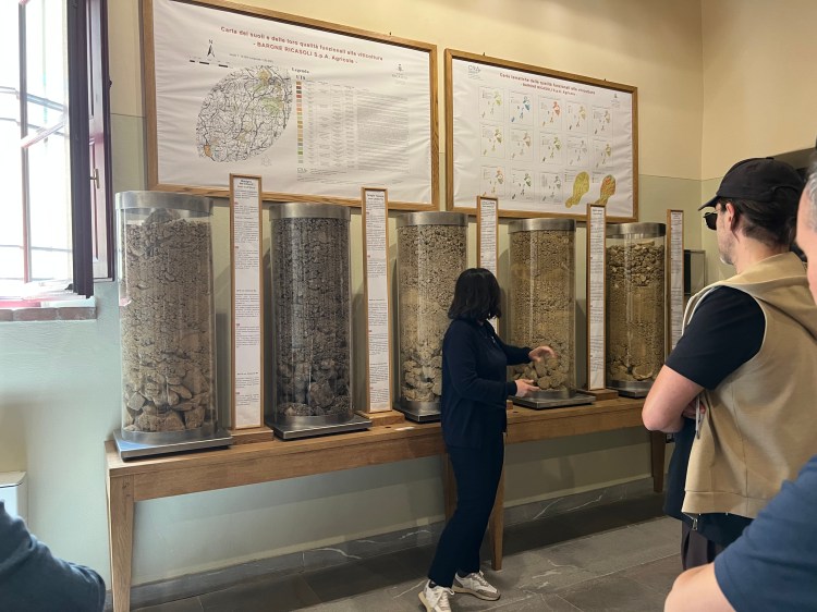 Questi locali risalgono agli inizi degli anni ’90 e all’iniziativa di Francesco Ricasoli, che rappresenta la 32ma generazione della famiglia (ancora proprietaria sia del castello sia dell’azienda), che decise di spostare la produzione nelle nuove cantine a valle del castello e di avviare un lavoro di studio dei suoli e di zonazione che portò, tra gli altri risultati, all’individuazione di ben 3 cru.
