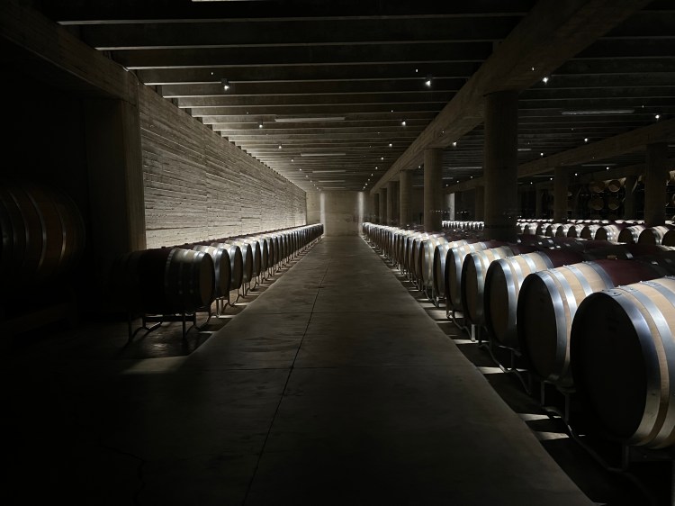 Finito il giro siamo riscesi fino ai piedi della collina, dove sono localizzate l’enoteca e le moderne cantine. Per Cantine Aperte l’immenso locale dedicato all’invecchiamento dei vini era aperto e visitabile senza prenotazione, ci è bastato aspettare neanche 10 minuti e s’era già formato un gruppetto che ci ha consentito di iniziare la visita e scendere nell’immenso Sancta Sanctorum del castello di Brolio: confesso di non aver mai visto in vita mia una cantina di queste dimensioni, le foto parlano da sole.