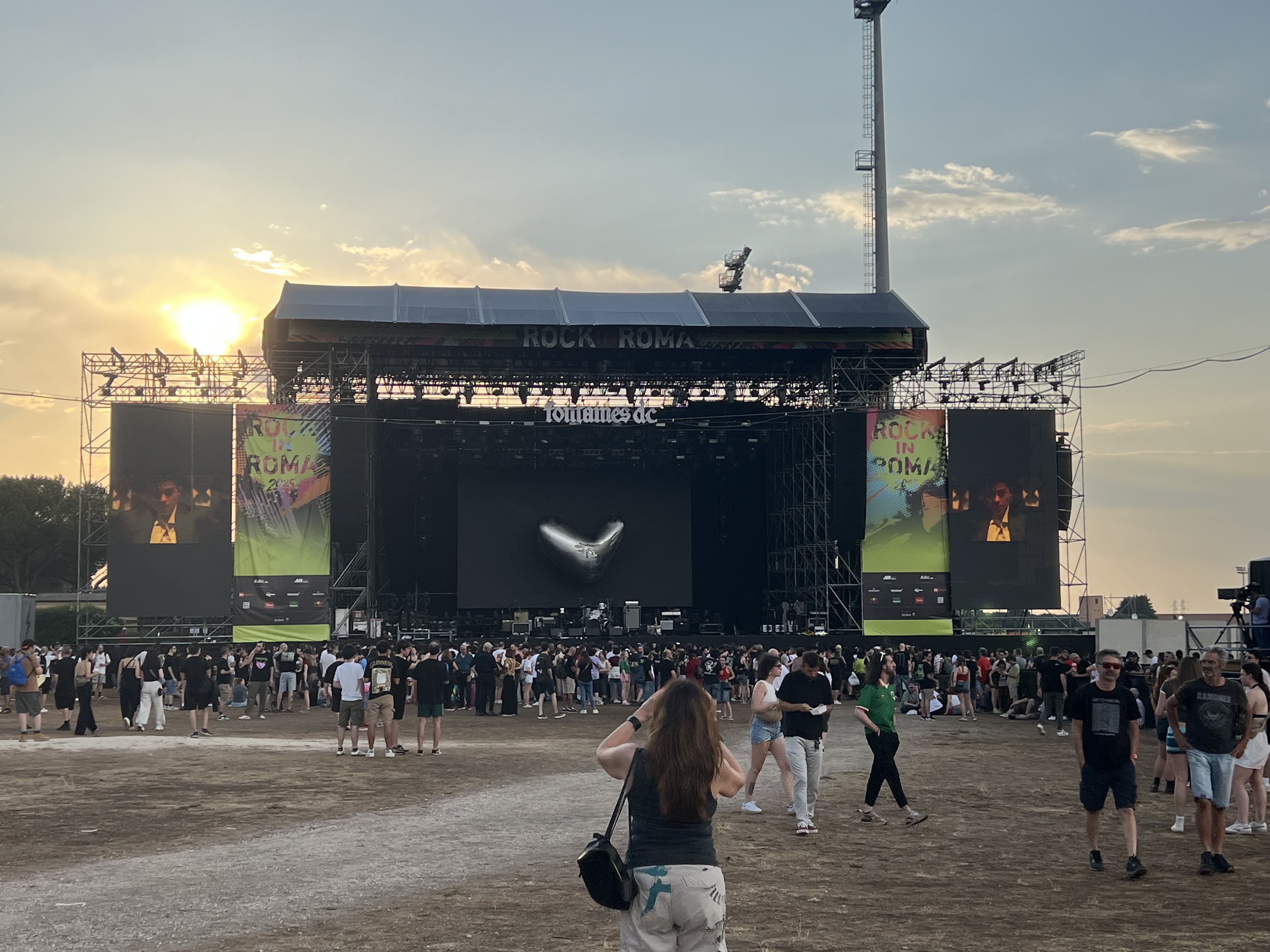 Usciti dall’ufficio, abbiamo divorato un kebab gigantesco e una birra e poi via verso l’area concerti adiacente all’ippodromo delle Capannelle. Sapevamo dove parcheggiare, circa un mese prima ci eravamo già stati per i Fontaines D.C. Sapevamo anche che all’interno, per le consumazioni, non occorreva cambiare “soldi per token” (che si fottano): alcuni chioschi accettavano tranquillamente contanti o carte, così abbiamo saltato una bella fila (che invece avevamo fatto la volta precedente) e ci siamo dissetati senza ulteriori indugi. Benedetta curva d’esperienza, vale anche per le venue…